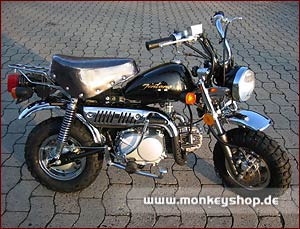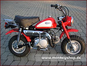 Jincheng Monkey Replica, Mokickzulassung,, CDI-Zündung, 12 Volt, 8“ Räder, verchromte Felgen und Schutzbleche, rot, schwarz, dunkelblau, gelb, Gepäckträger