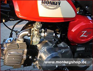 Jincheng Monkey Replica, Motorradzulassung, 3-Ganggetriebe, Fliehkraftkupplung, verstärkte Stoßdämpfer, Tacho 120 Km/h, CDI-Zündung, 12 Volt, 8“ Räder, verchromte Felgen und Schutzbleche, rot, schwarz, dunkelblau, gelb, Gepäckträger 1699 €
